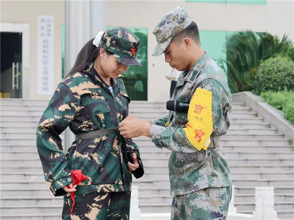 同学们互帮互助,整理衣角、调整肩章,很快便穿戴整齐。一身迷彩,一份担当,期待他们在接下来的爱国主义主题社会实践活动中绽放风采!