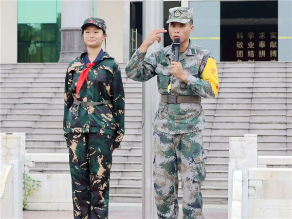 教官代表号召同学们以军人姿态刻苦训练,在汗水中蜕变,在磨砺中成长,以坚毅姿态开启青春华章!