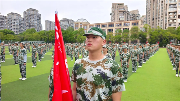 站军姿时,同学们挺直腰背、纹丝不动,任凭汗水顺着脸颊滑落;练队列时,大家认真听令、反复调整,力求每一个步伐都整齐划一;唱军歌时,嘹亮的歌声响彻操场,唱出了少年的热血与豪情。即便衣衫被汗水浸透,即便双腿有些酸痛,也没有一人轻言放弃。那挺拔的身姿、整齐的队伍、铿锵的口号,正是冠城学子昂扬向上、永不言弃的精神风貌的最佳写照。