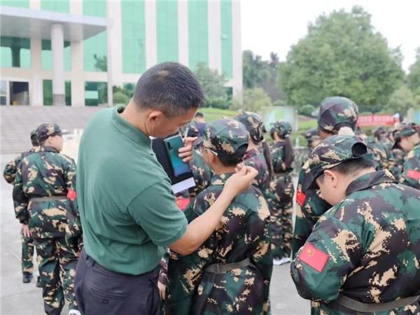 同学们互帮互助,整理衣角、调整肩章,很快便穿戴整齐。一身迷彩,一份担当,期待他们在接下来的爱国主义主题社会实践活动中绽放风采!