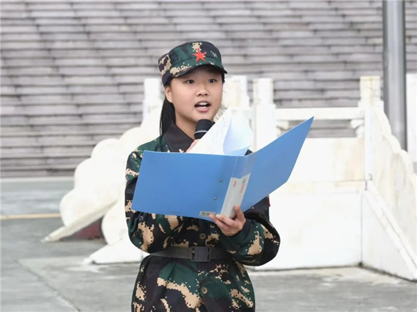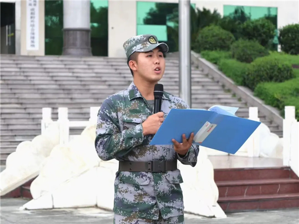 教官代表号召同学们以军人姿态刻苦训练,在汗水中蜕变,在磨砺中成长,以坚毅姿态开启青春华章!