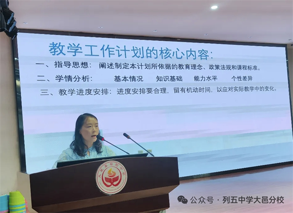 科研室副主任李绍勇作了专题发言。他深入阐述了教育科研工作对教师专业成长和学校高质量发展的重要意义,系统介绍了科研项目的不同类别,并重点对本年度校级课题的申报政策、流程及注意事项进行了详尽解读。师培中心主任贾登位就本学年师培工作的整体规划进行了介绍,并重点详解了旨在促进青年教师快速成长的“薪火计划”实施方案,展现了学校致力于构建梯队化、专业化教师队伍的坚定决心。